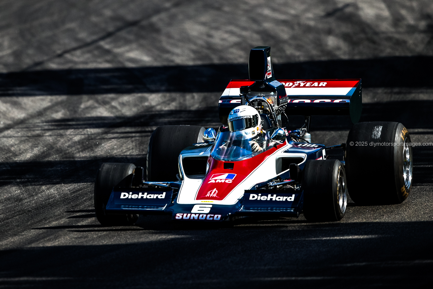 Next up was the second practice session for Group 4, and by now, beautiful shadows and light were being cast over the back straight. A 1989 Dallara Scuderia Italia F1 (top) and a 1973 Chevron B23 (bottom).