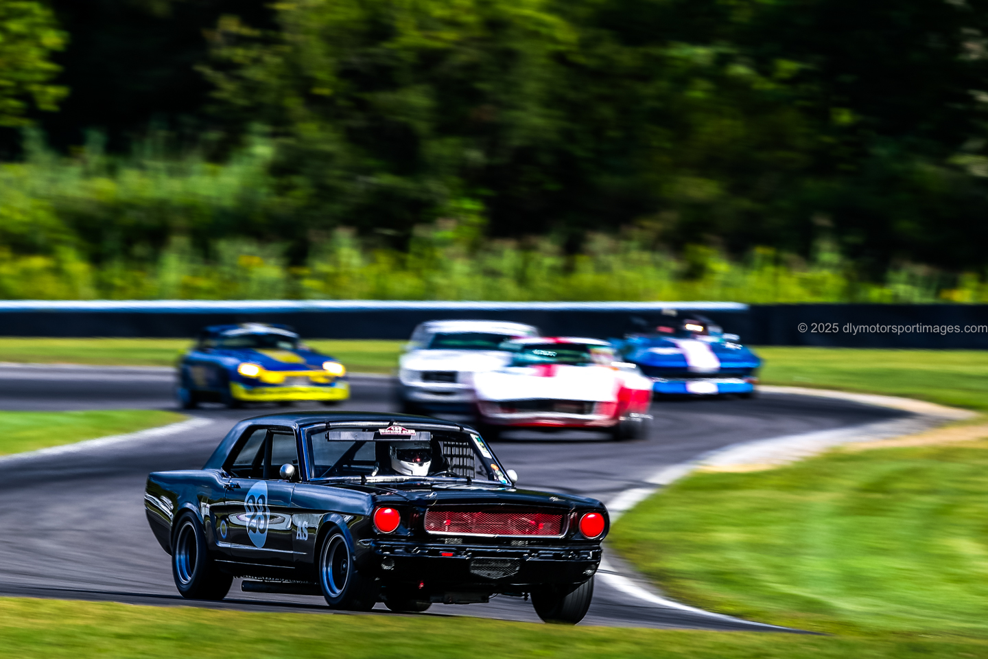 Before this session ended, walked down the hill, through the Midway to The Esses, for the Group 7 practice session two. A 1964 Ford Mustang (top) and a 1973 Porsche 911 (bottom).