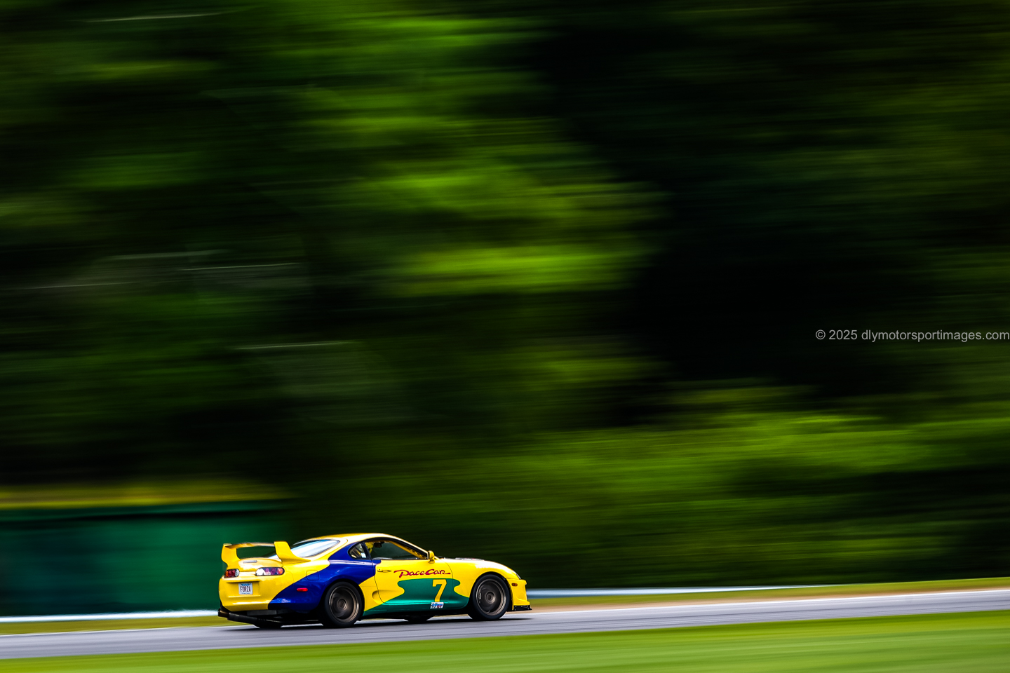 Stayed in this location for the Group 8 practice session 2, and started with photos of the cars exiting The Esses. A 1993 Toyota Supra “pace car” (top) and a pair of 1990 Lotus X180R race cars (bottom).