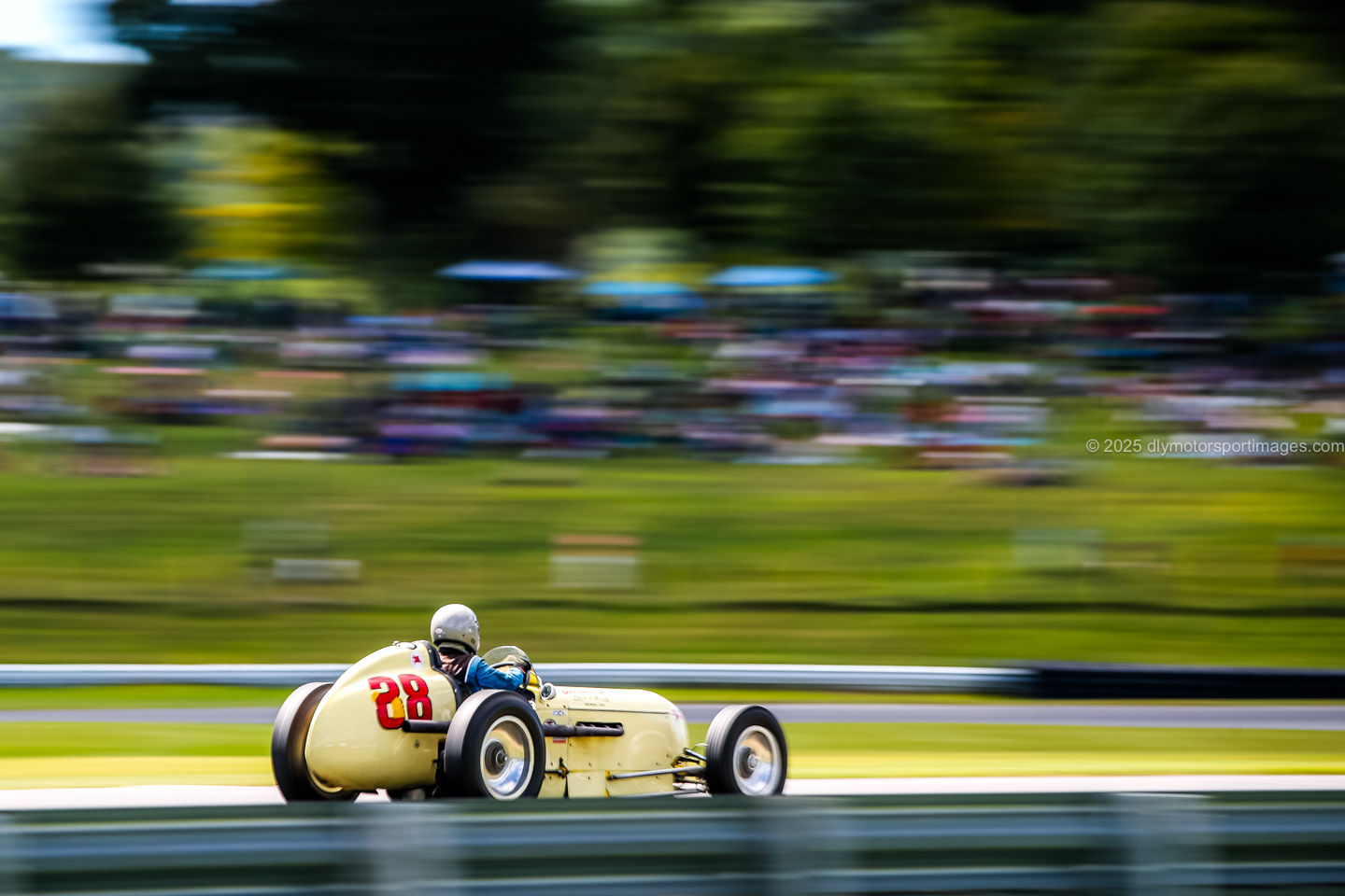 For the second Group 3 race, walked down the A Paddock to the inside of Big Bend, for some panning photos at “normal” (top) and very slow (bottom) shutter speeds. Really liked how it appeared that “waves of foliage” engulfed the 1950 Cadillac 61 “LeMonstre”, when using a very slow shutter speed (bottom).