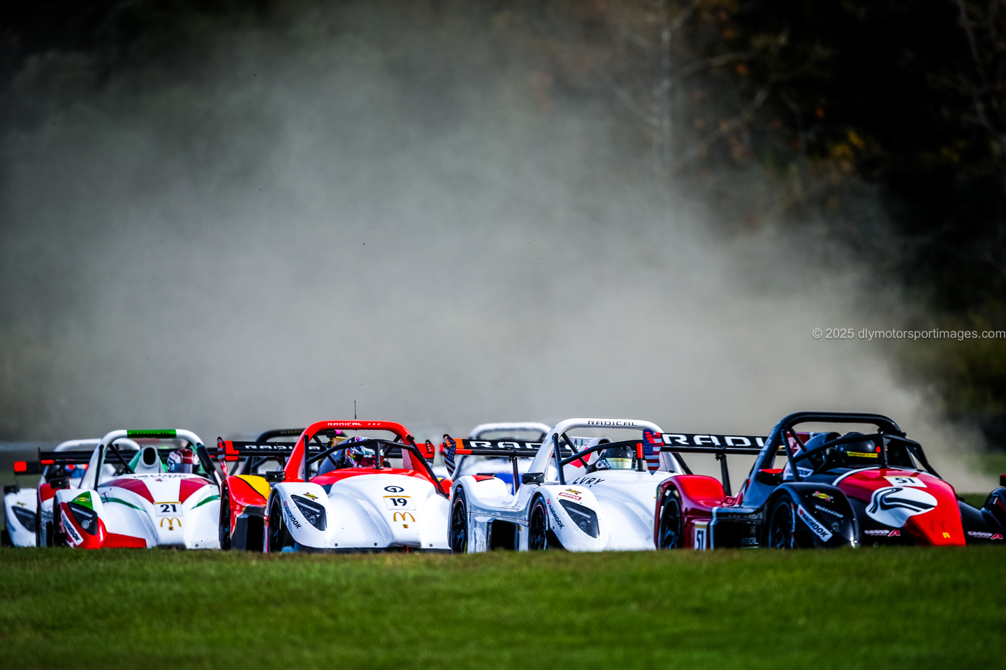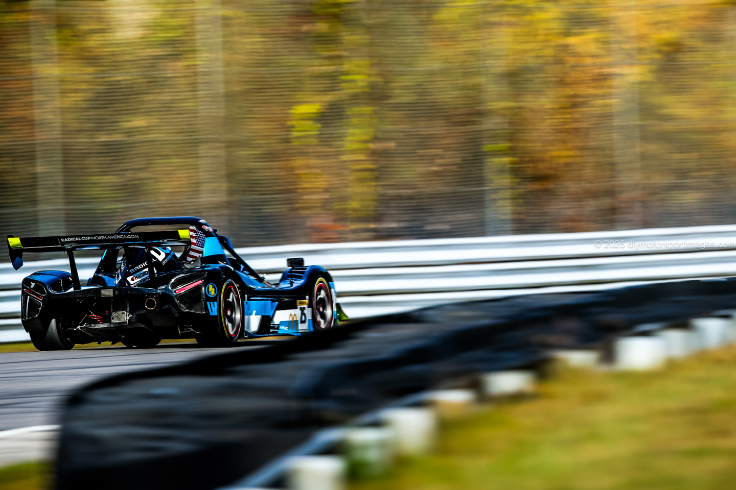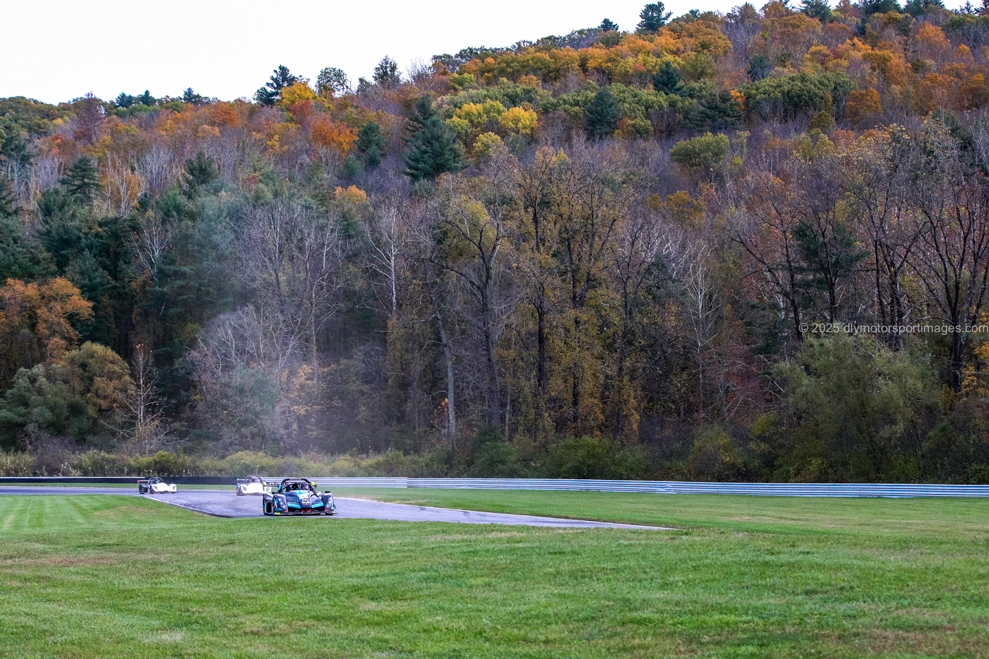 Next up was race 2, for the Radical Cup North America. This is a multi-class sports car racing series, that features light-weight spec cars, all powered by high-performance race-tuned engines. Really thought these open cockpit cars looked really cool. Here’s a photo of a Radical Cup car with the fall colored leaves of the Berkshire Mountains behind, and called this photo, “Postcard of Lime Rock Park in the Fall”.