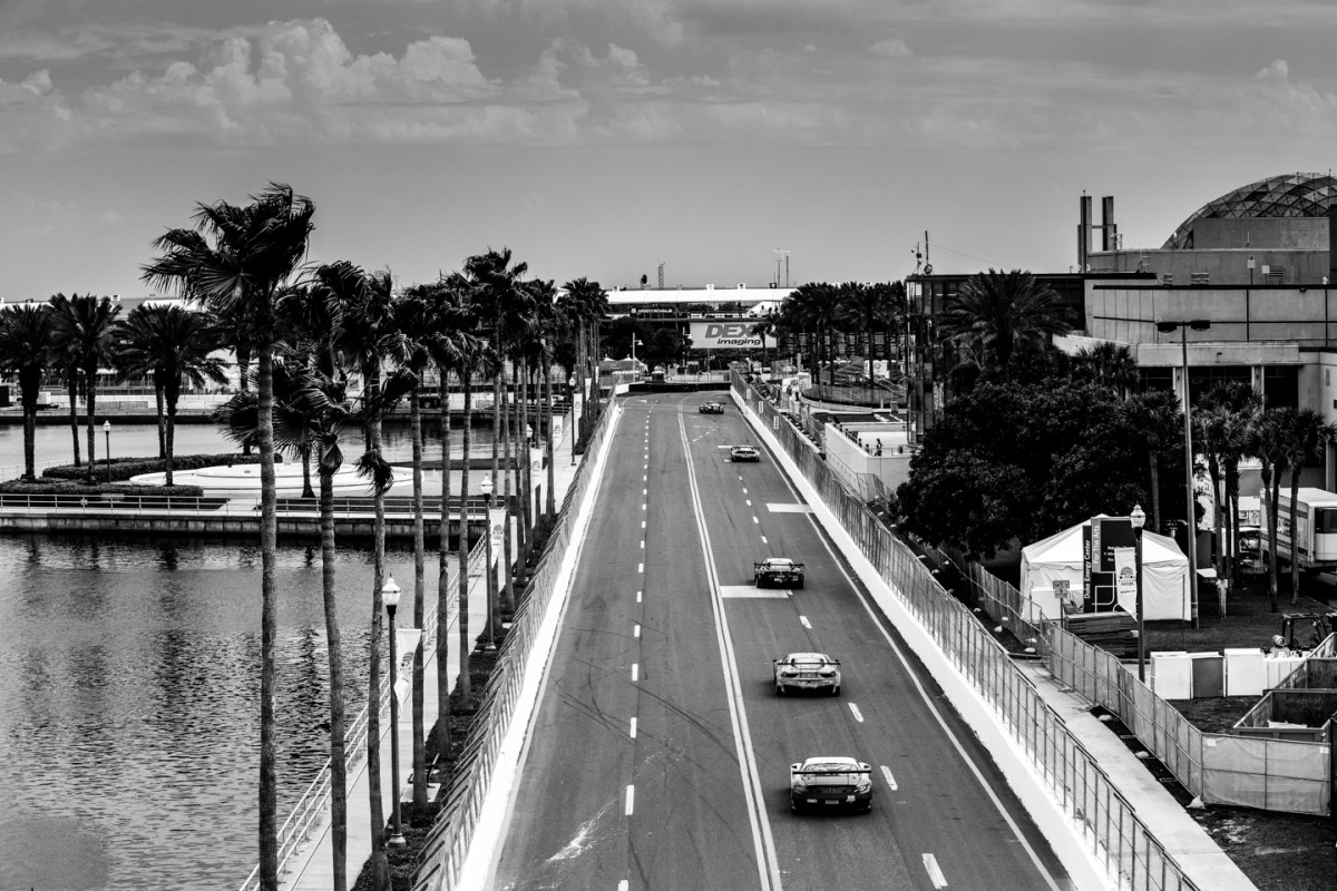 Rounds 3 and 4 of the GT class for the Pirelli World Challenge (PWC) was held on the streets of St. Petersburg in Florida. The picturesque 14 turn street circuit is about 2 miles in length and encompasses the beautiful harbor front, the Al Lang Stadium, Dali Museum, and part of the Albert Whitted Airport. First up is the Thursday afternoon test session. Hope you like the photos.